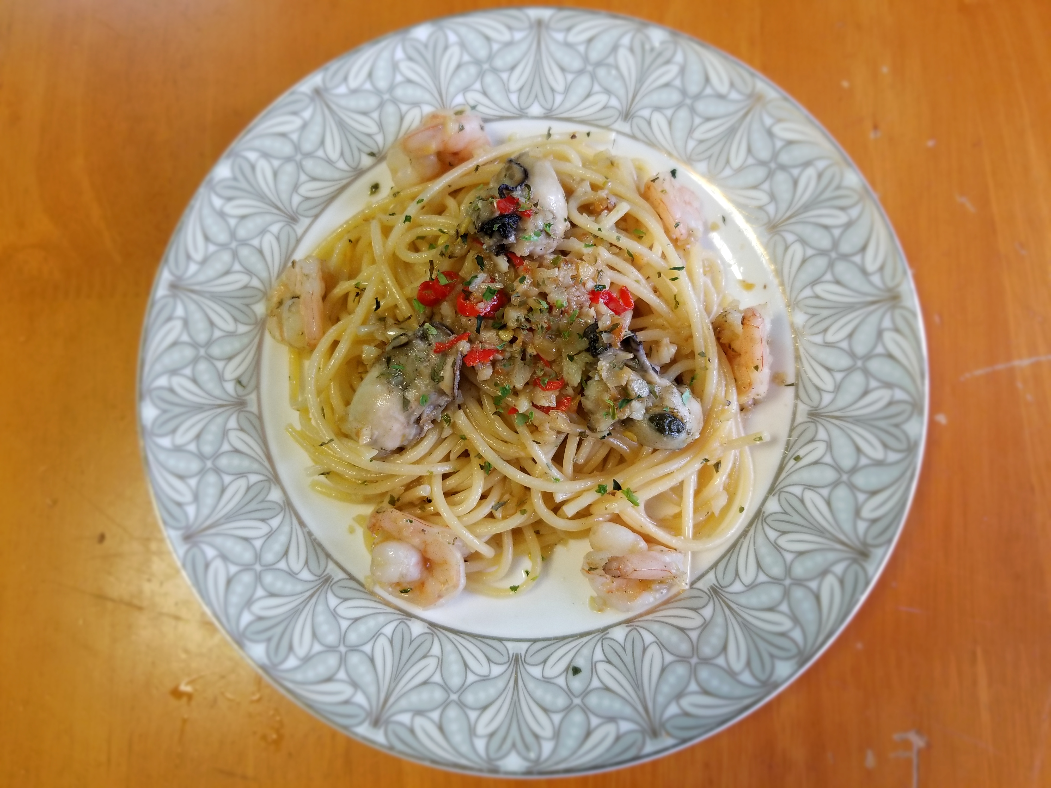 Normally this vegan pasta recipes is very simple but it’s really delicious! Basically you just need a quality of olive oil, garlic, chilli and spaghetti to make it. Moreover, we have tried to add some seafood, the results was awesome.